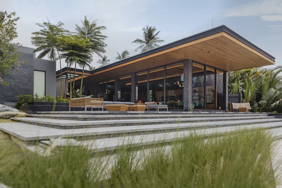 Từ yêu cầu của gia chủ, kiến trúc sư đề xuất thiết kế ngôi nhà có cấu trúc một tầng với các bức tường kính trong suốt, đảm bảo tầm nhìn ra sông từ mọi nơi trong nhà.